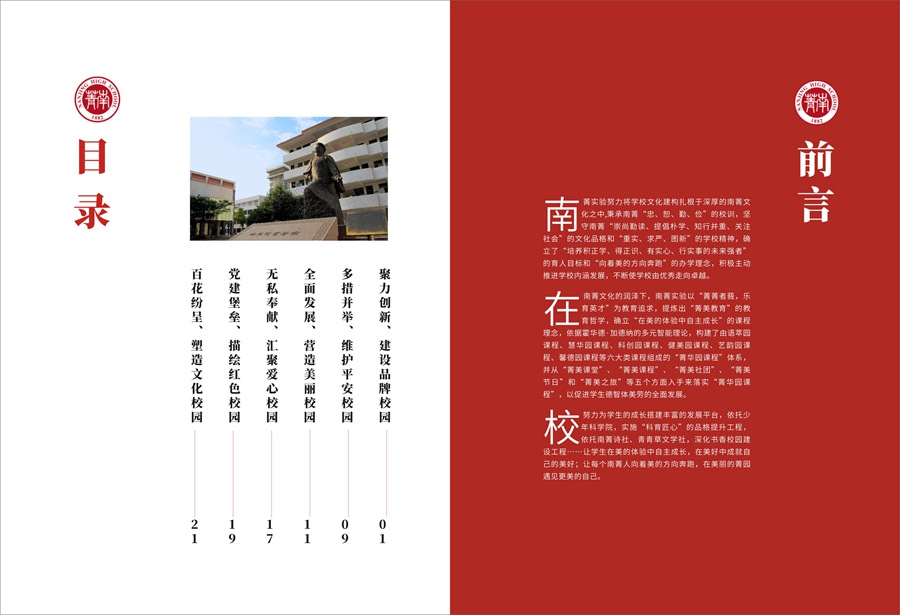 该项目是中山方成文化发展有限公司2020年2月份为江苏省南菁高级中学实验学校提供的校园文化建设项目服务,包括学校年鉴文案策划与年鉴画册设计。